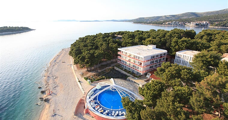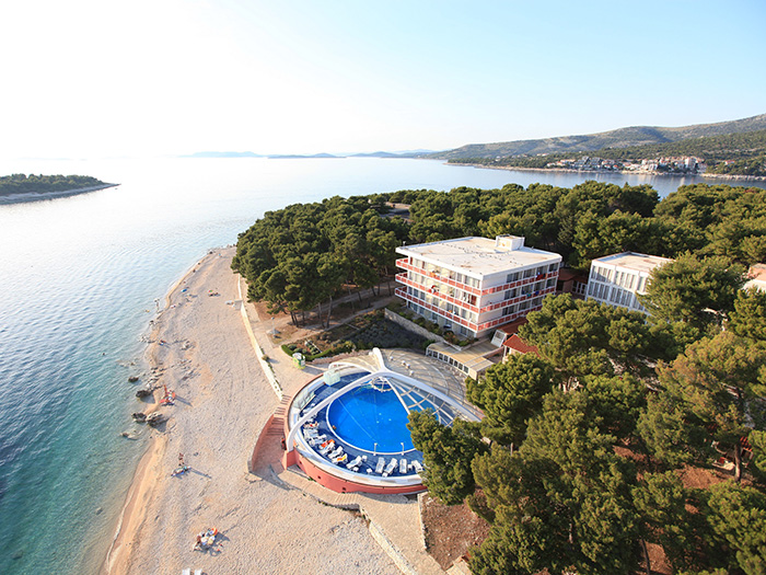 Príjemný hotelový komplex umiestnený v borovicovom lesíku na polostrove Raduča, iba 500 m od centra Primoštenu. Hotelová pláž so sprchami pred hotelom je upravená, štrková.