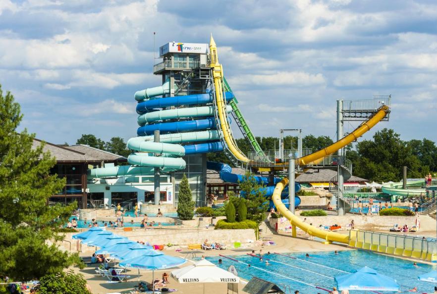 Vodný park Terme 300 v prírodnom prostredí - 14 bazénov rôznej veľkosti a tvaru, otvorené aj kryté, s obyčajnou aj minerálnou vodou, detské bazény, podvodné masážne trysky, vodopády, vírivky, kĺzačky, tobogany rôzneho tvaru a sklonu, animácie a aktivity pre deti.